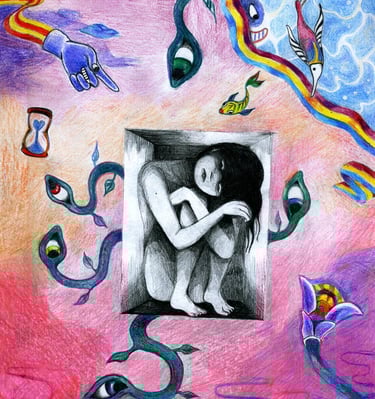 I'm a french self-taught illustrator working with mixed medias, from drawing to video projection mapping and textiles.