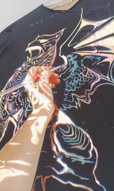 That’s how I became fascinated with style and the power of graphic design on fabric, and how it can transform someone’s look and vibe. I’ve always loved finding abandoned things, giving them new life, and making them special again. After years of experimenting, I’ve launched Krush, my slow fashion brand where I customize clothing using airbrushing, hand-painting, bleach, embroidery, and sewing. Some pieces are new, others are upcycled treasures.
